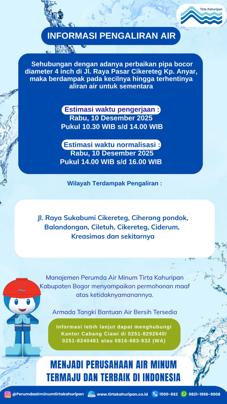 [CAB. CIAWI] INFO PENGALIRAN AIR 10 DESEMBER 2025