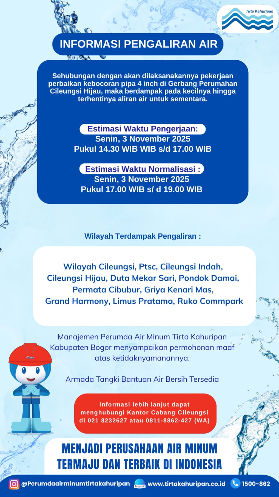 [CAB. CILEUNGSI] INFO PENGALIRAN AIR 3 NOVEMBER 2025