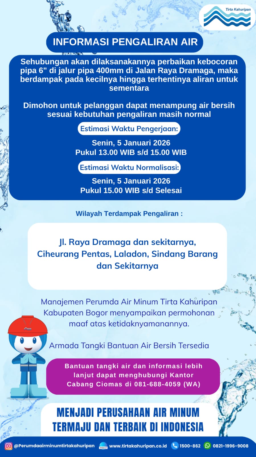 [CAB. CIBINONG] INFO PENGALIRAN AIR 1 JANUARI 2026