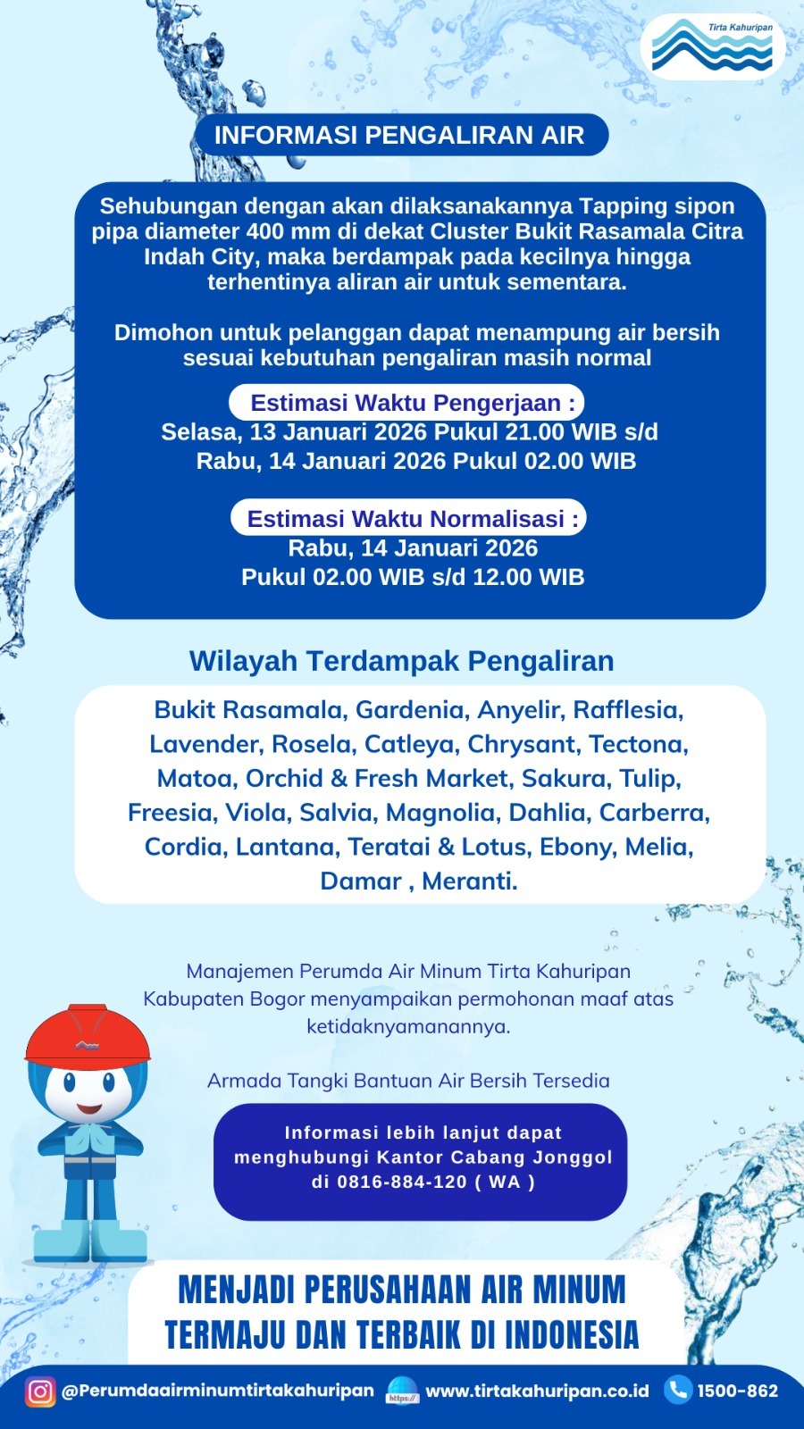 [CAB. CIBINONG] INFO PENGALIRAN AIR 1 JANUARI 2026