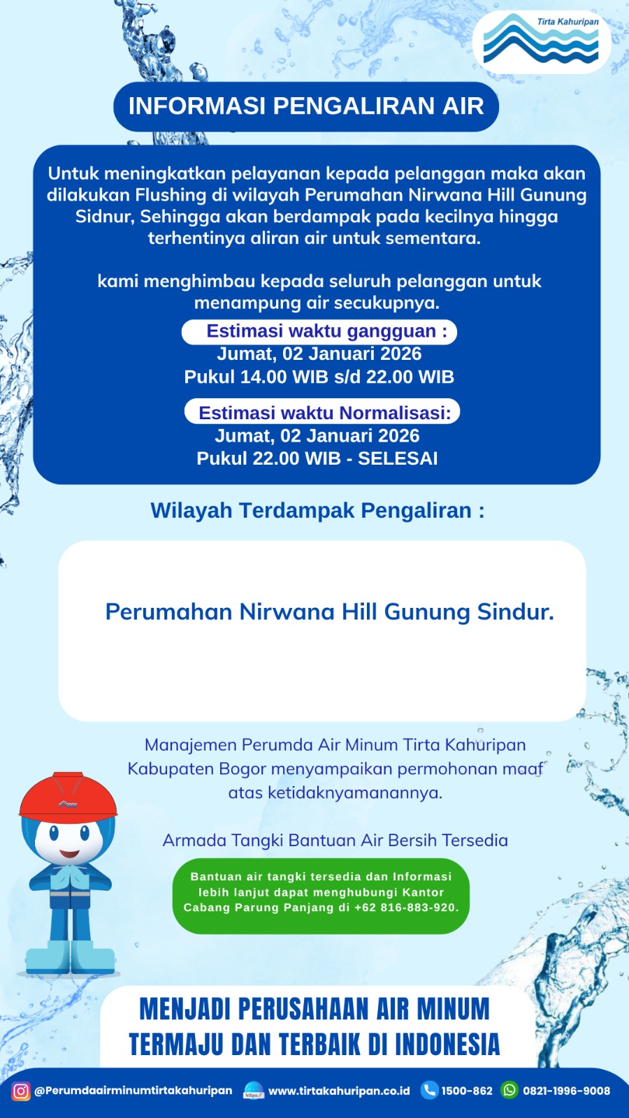 [CAB. CIBINONG] INFO PENGALIRAN AIR 1 JANUARI 2026