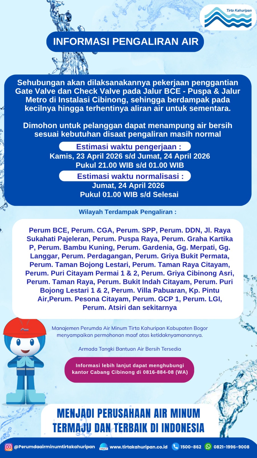[CAB.CIBINONG] INFO PENGALIRAN AIR 24 APRIL 2026